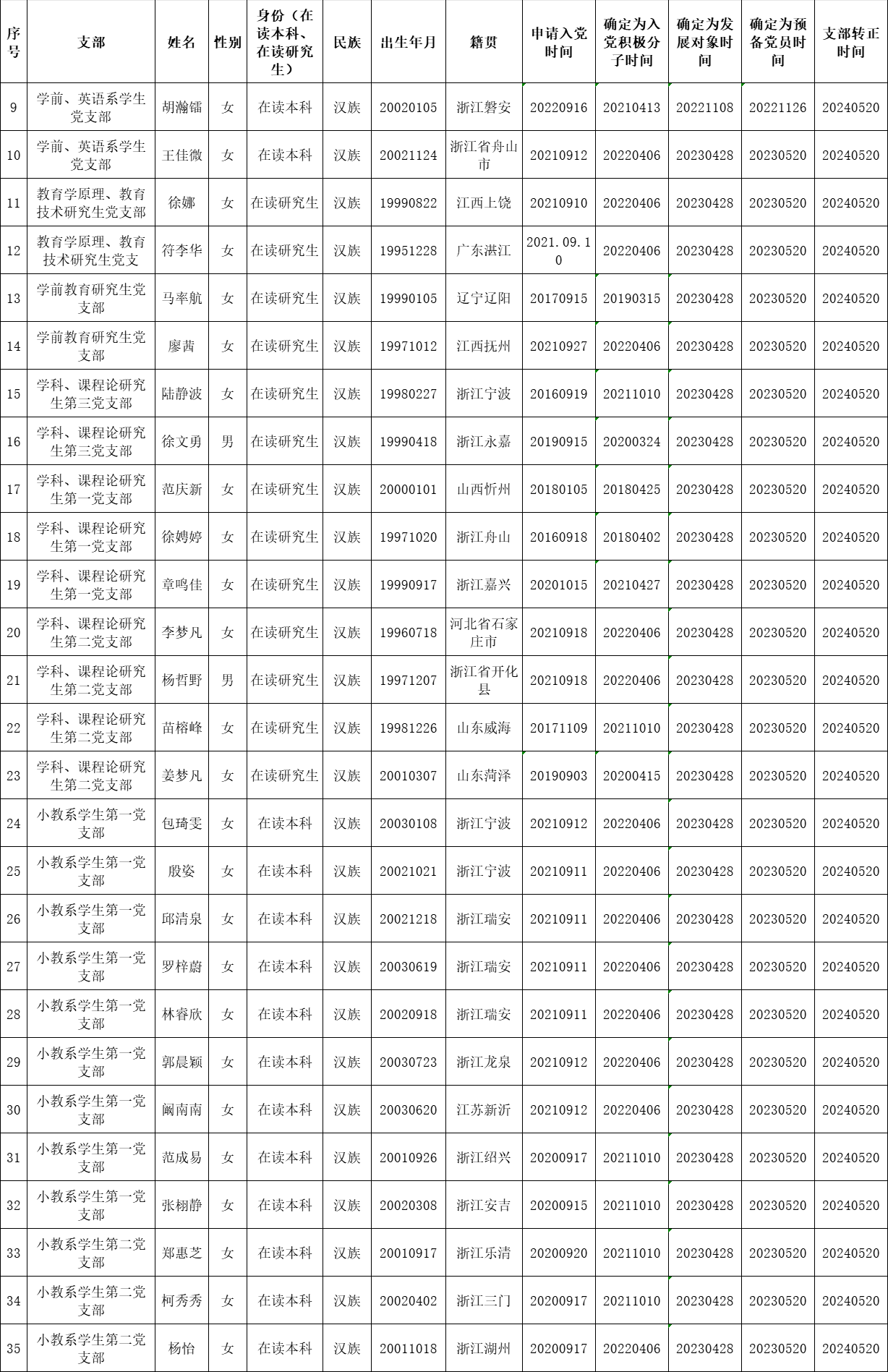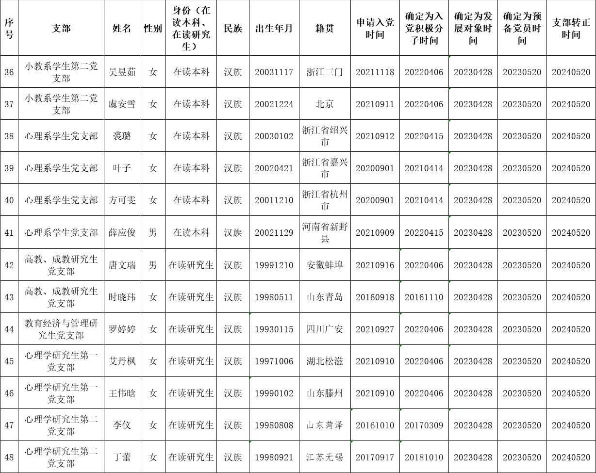 根据《中国共产党发展党员工作细则》中发展党员的文件要求,经对郑欣等48名同志的预备党员转正条件、转正程序等进行严格审查。2024年5月28日,学院党委会集体审议讨论了郑欣等48名同志的转正问题。党委委员共7名,实到会7名。经逐个审议和表决,7名党委委员一致认为郑欣等48名同志已具备正式党员条件,同意批准按期转为中共正式党员,党龄从预备期满转为正式党员算起。具体名单公布如下: