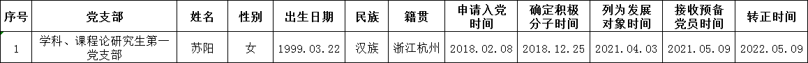 根据《中国共产党发展党员工作细则》中发展党员的文件要求,经对苏阳同志的预备党员转正条件、转正程序等进行严格审查。2022年5月10日,学院党委会集体审议讨论了苏阳同志的转正问题。党委委员共7名,实到会7名。经逐个审议和表决,7名党委委员一致认为苏阳同志已具备正式党员条件,同意批准按期转为中共正式党员,党龄从预备期满转为正式党员算起。具体名单公布如下: