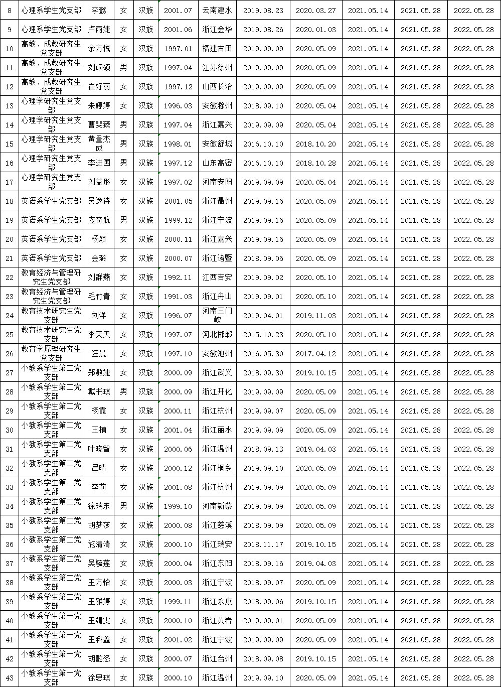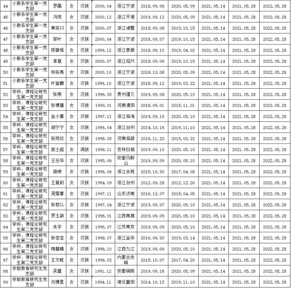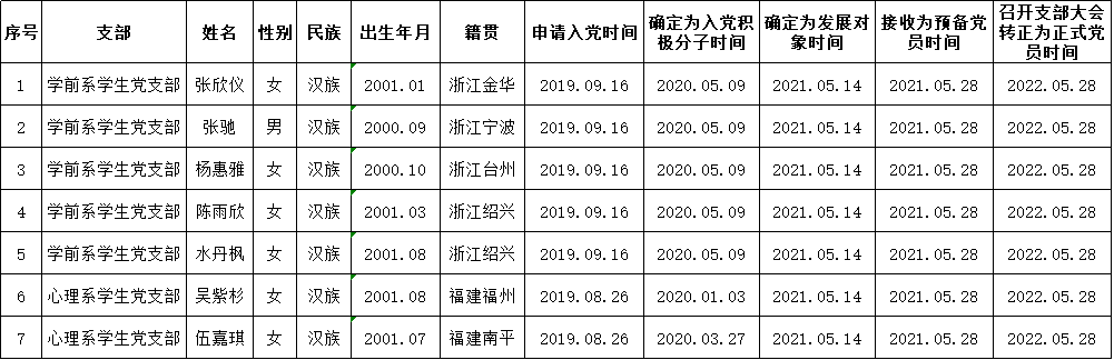 根据《中国共产党发展党员工作细则》中发展党员的文件要求,经对张欣仪等69名同志的预备党员转正条件、转正程序等进行严格审查。2022年6月7日,学院党委会集体审议讨论了张欣仪等69名同志的转正问题。党委委员共7名,实到会7名。经逐个审议和表决,7名党委委员一致认为张欣仪等69名同志已具备正式党员条件,同意批准按期转为中共正式党员,党龄从预备期满转为正式党员算起。具体名单公布如下: