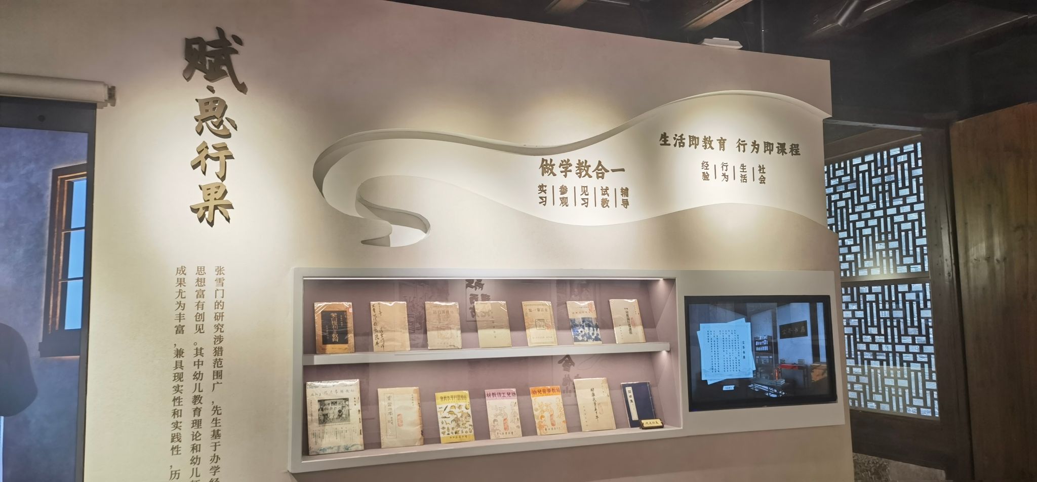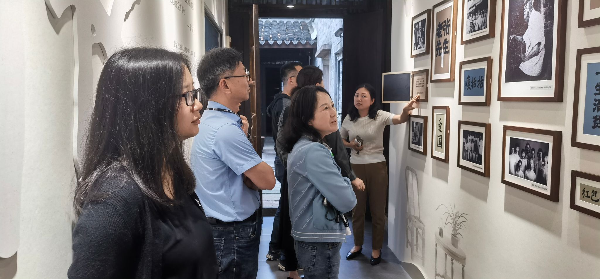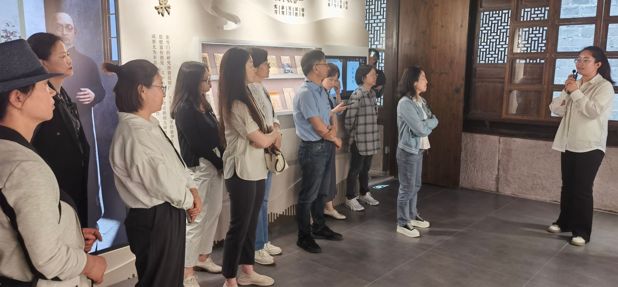 张雪门教育思想研究院坐落在宁波历史悠久的街区莲桥第,这里曾是张雪门的故居所在,白墙黑瓦、青砖石板留存着历史,也见证着当下。学前教育系教师党支部成员们参观了纪念馆。纪念馆借助AI技术实现智能互动,让人沉浸式了解张雪门的一生。