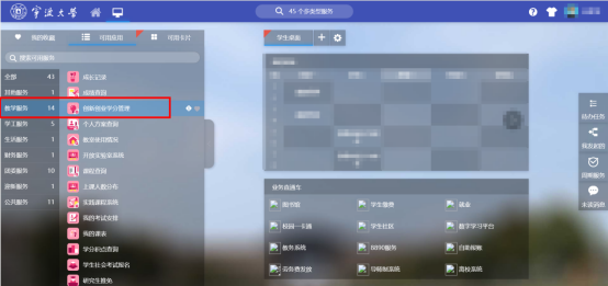 2.登陆后点击搜索栏,选择团委服务-学生科研成果管理