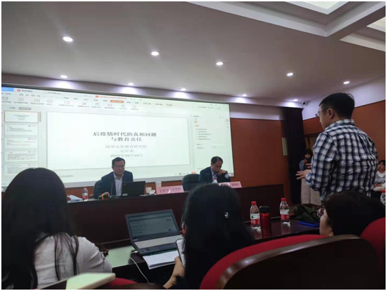 石中英教授首先从“后疫情时代”出发引出人们对疫情认识、判断、争论等真相问题的反思,如疫情的来源以及疫情爆发的特定族群等真相问题。其次,石中英教授从疫情的严峻程度、应对的迫切性、时间的紧迫性、问题的多样性以及政治的复杂性这五个方面阐述新冠病毒疫情期间真相问题为什么如此严重。再次,石中英教授描述了“后真相”的内涵及其社会基础,所谓“后真相”就是真相和逻辑在信息传播的过程中被忽视,而情感、流量煽动主导舆论的情形。并从关键特征、困境等方面对后真相时代进行了详细介绍。“片面真相”、“未知真相”、“主观真相”、“人造真相”值得人们警醒。接下来,石中英教授阐述了后真相时代的认识论基础:后现代主义真理观,并介绍了后真相、后现代真理危机的源头:无弊的真理。