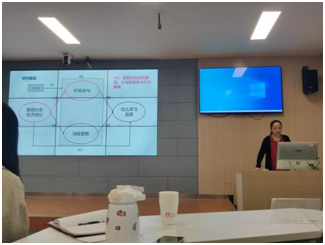 第二阶段由冯丽娜博士汇报,主题为“儿童学习品质研究的理论与实证”。汇报内容主要包括学习品质理论的演变、学习品质的影响因素、家庭学习环境、积极参与和消极管教、延伸议题与讨论等部分。首先,冯博士阐述了儿童学习品质的概念,从实证研究和教育政策文件两方面归结出学习品质的结构要素;其次,冯博士从生态系统理论角度讨论了儿童学习品质的影响因素,并着重分析了家庭结构变量与家庭过程变量对儿童学习品质的影响,通过实证研究发现,家庭学习环境对家庭社会经济地位与幼儿学习品质具有中介作用,父母积极参与、消极管教对家庭社会经济地位与幼儿学习品质起到显著的中介作用。最后,冯博士介绍了该主题后续研究的两大方向:幼儿学习品质的测量开发和幼儿学习品质干预研究。接着,大家展开了进一步研讨。