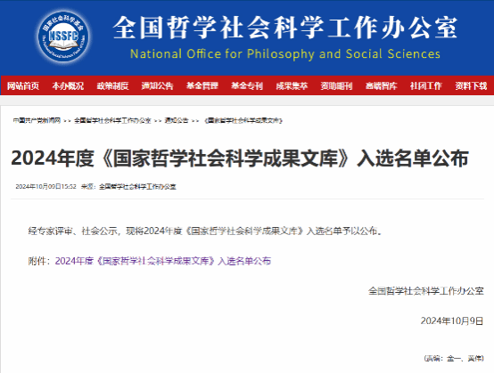 2024年10月9日,全国哲学社会科学工作办公室公布了2024年度《国家哲学社会科学成果文库》入选名单,成年人电影