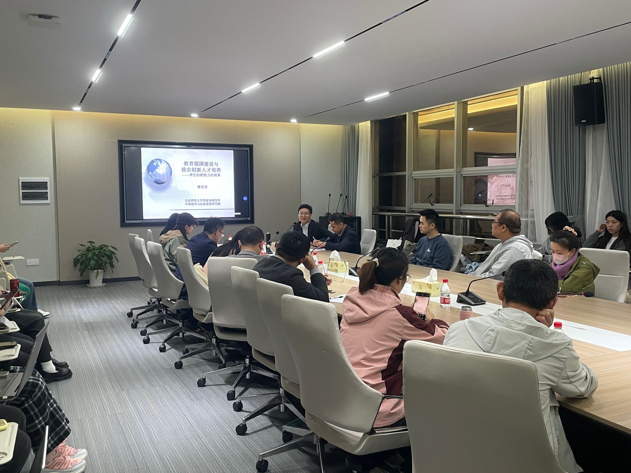 褚宏启教授从教育强国,拔尖人才培养问题出发,点明了中小学对拔尖创新人才培养的缺失,结合国际教育现状,以教育强国建设为宏观目标,聚焦到创新能力的培养分析创新人才培养的重要性和着力点。褚教授从教育自身强、教育功能强、国际排序强这三方面分析了教育强国的内涵,透过国力看教育,通过剖析美国基础教育展现教育强国的具体表现,顺势指出教育强国建设的内在逻辑 “教育助推中国成为世界强国”。责任落到高等教育,褚教授立足当下指出大学部分制度的弊病及其对创新思维的阻碍,提出优化高等教育和职业教育体系结构,高等学校聚焦重点领域开展科技创新,最后围绕重点领域培养拔尖创新人才。创新能力是一种高级行为能力,是新颖且实用的理念、想法、程序或者事物,褚老师列举腾讯和支付宝诞生的例子,说明创新人才的重要价值。创新于一个国家来说十分重要,于个人同样重要。褚教授引用丰富的图片和资料,分别从教学,管理两方面分析国内教育,建议老师改变教学方式、学校改变管理模式,来促进全体学生创新能力的培养。而服务于于少部分天才的英才教育是提高国家核心竞争力的战略选择,褚教授认为英才教育是实现人的充分发展、促进教育公平的重要手段,并强调了拔尖人才培养的重要性。