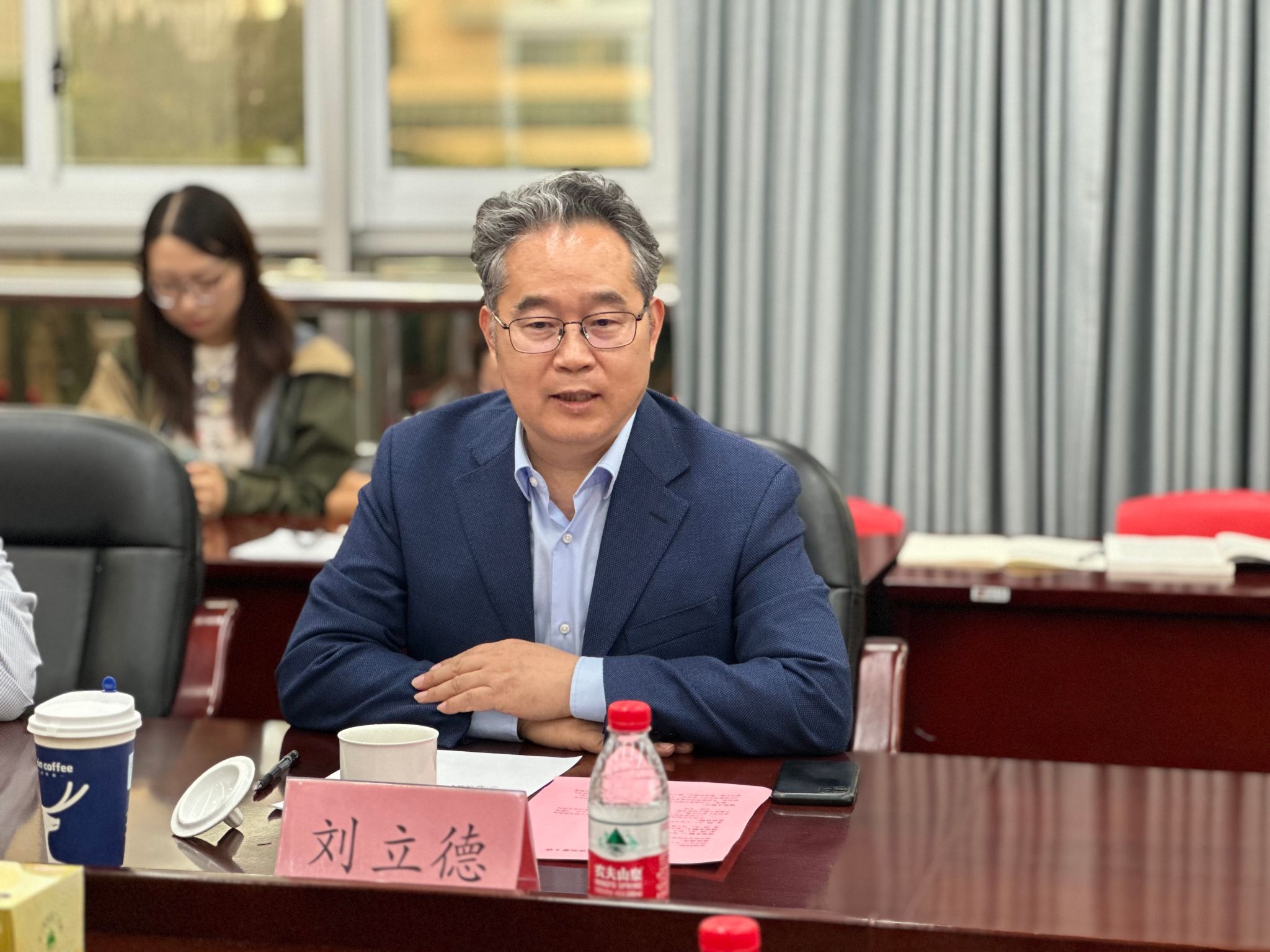 学术副院长伍宸教授主持,他对郭戈先生和刘立德先生的到来表示了热烈的欢迎,并代表学院向两位专家致以诚挚的谢意。