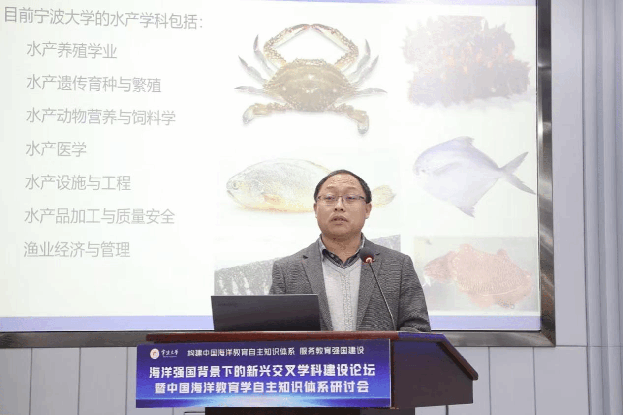 海洋学院副院长母昌考教授作《以水产为核心的学科交叉建设》主旨报告
