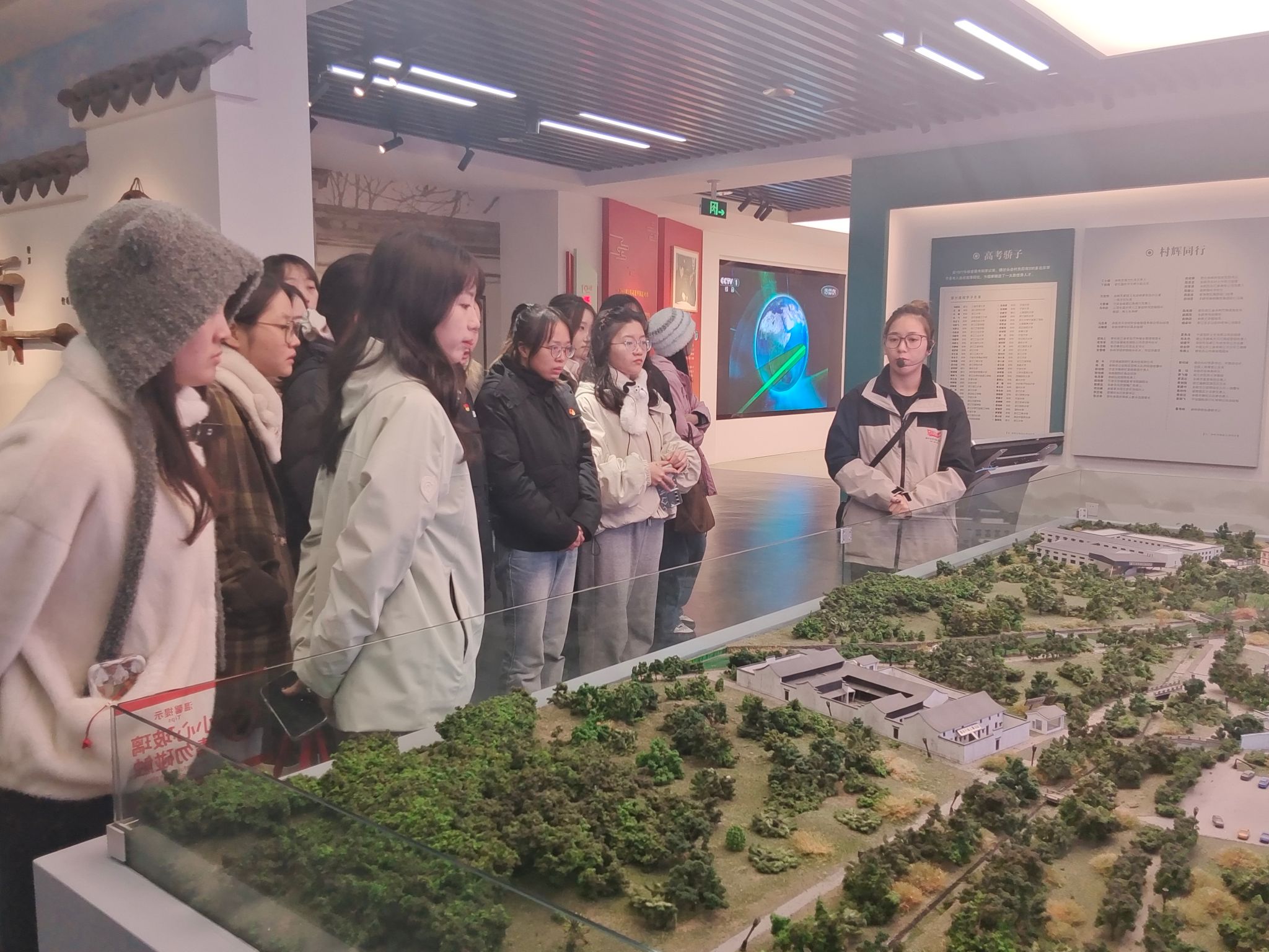 在横坎头新时代文明实践站,同志们满怀期待地开启学习之行。站内的回信馆以三个篇章分别展示了横坎头村史村情、红色记忆、风俗民情,习近平总书记两封回信精神以及特色党建、治村经验、乡村振兴战略规划、村庄建设远景等内容,全面展现了横坎头村在“千万工程”引领下,从往昔的质朴村貌到如今在党的坚强领导下焕发出勃勃生机的蜕变之路。同志们深受触动,积极探讨如何将这些经验融入教育与社会服务工作。