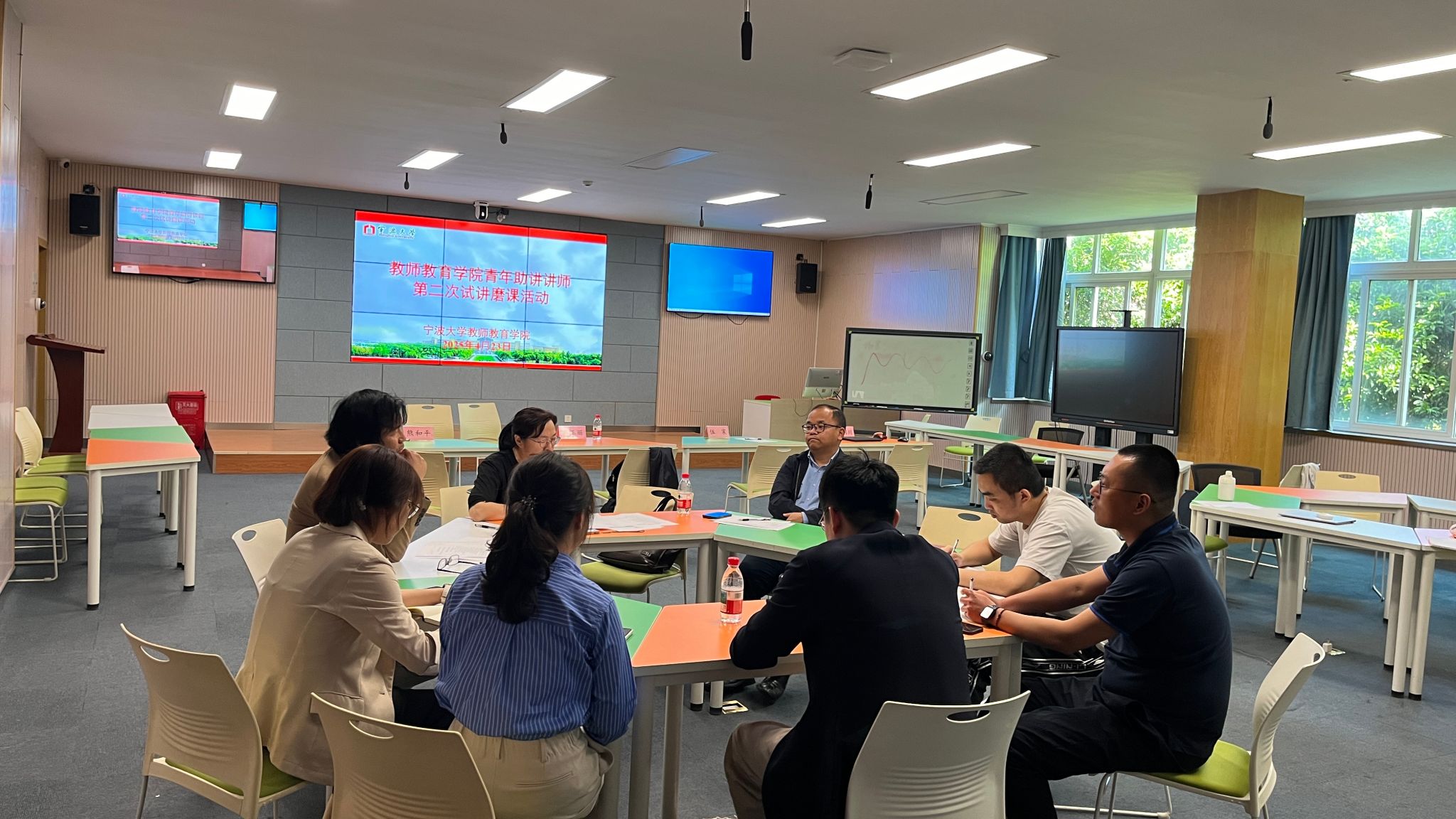 在教育楼208成功举办青年助讲教师第二次试讲磨课活动。孙玉丽、伍宸、熊和平和余利川四位专家应邀对五位青年教师进行指导。