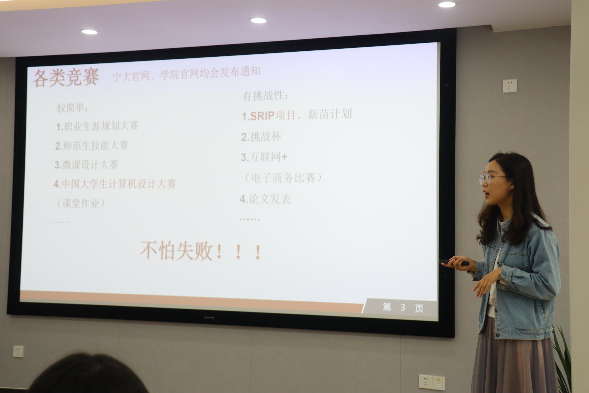 首先向我们分享的是徐文倩学姐,徐文倩学姐向同学们介绍了自己的学生工作经历,在谈到学习方面时,她讲述了自己参与各类竞赛的过程,鼓励同学们积极参加各种活动和竞赛,不要害怕失败。接着,她分享了在贵州省晴隆县第六小学支教有意思的经历,并简单解读了研支团推免条件。随后,徐文倩学姐劝勉同学们做好时间管理与规划,充实本科学习生涯。第二位分享的是张烨敏学姐。张烨敏学姐特别强调了学生干部经历的重要性,她曾任成年人电影