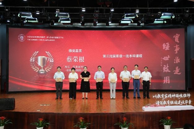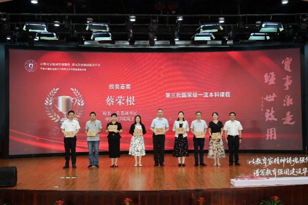 获批第三批国家级一流本科课程的周国平老师(右三)颁奖