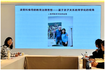 首先,熊金菊博士分享了赴美访学期间与波普科维奇教授的交流互动:以哲学文本为学习材料,以追问与回答的对话交流打开作为研究者的视角与思路。