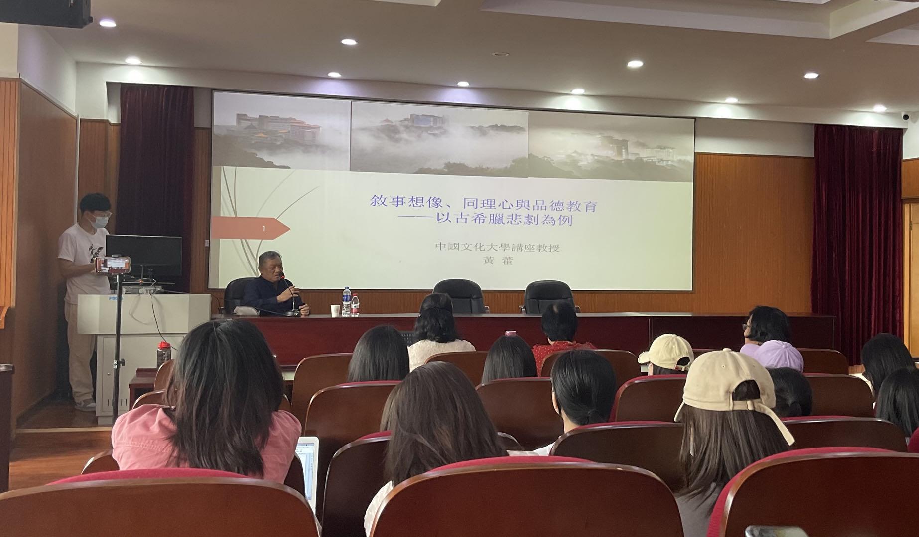 “雪门讲坛”第39讲学术报告在实验楼211展开。台湾地区中国文化大学哲学系黄霍教授向我们做了主题为“叙事想象、同理心与品德教育——以古希腊悲剧为例”的报告,陶志琼教授担任本次学术活动主持人。本次学术活动的主要参加者是成年人电影