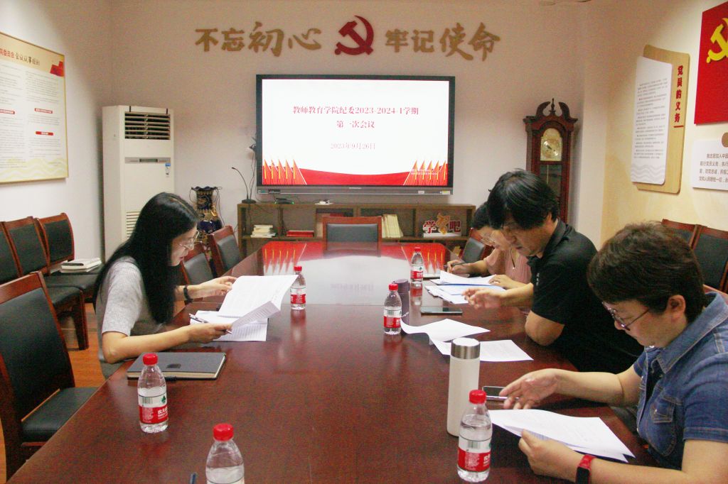 龚小虹首先向学院纪委委员传达了《以铁的纪律打造忠诚干净担当、敢于善于斗争的纪检监察铁军——我省召开纪检监察干部队伍教育整顿推进会》等纪检监察系统有关重要会议和文件精神以及学校2023年第三季度二级纪委书记例会精神,并在中秋、国庆即将到来之际统筹部署了从严正风肃纪等工作。她强调,要深化政治监督,不断推动学院纪委监督工作提质增效,营造良好发展生态,持续推进“清廉师院”建设。随后,与会成员围绕师德师风建设等近期工作重点展开讨论,交换意见。