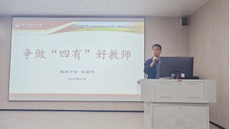 讲座伊始,吴校长以镇海中学在办学方面的探索为例,通过幽默风趣的语言、丰富的实践案例、独到的见解和深刻的思考,对教师团队进行了深入剖析和讲解。他特别强调了,教师必须具备正确的职业意识、一定的职业精神、扎实的基本功、独特的教育理解和主张等特征。而“四有”好教师应具备的意识与能力包括爱、责任、师表、育人、胸襟和反省精神等。吴校长还详细说明了,教师应该具有的职业精神:立德树人、爱岗敬业、廉洁自律、团结协作。