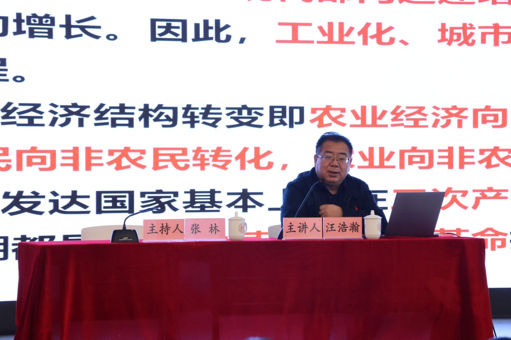 在讲到第三部分“经济高质量发展和中国式现代化”时,汪浩瀚强调高质量发展是新时代、新征程的主题,要加快建设现代化经济体系,补齐短板;要深化供给侧结构性改革,打通堵点;要构建新发展格局,促良性循环。要正确判断当下中国经济的基本特点,新形势下不断发展新领域、开辟新赛道,推动高质量发展。