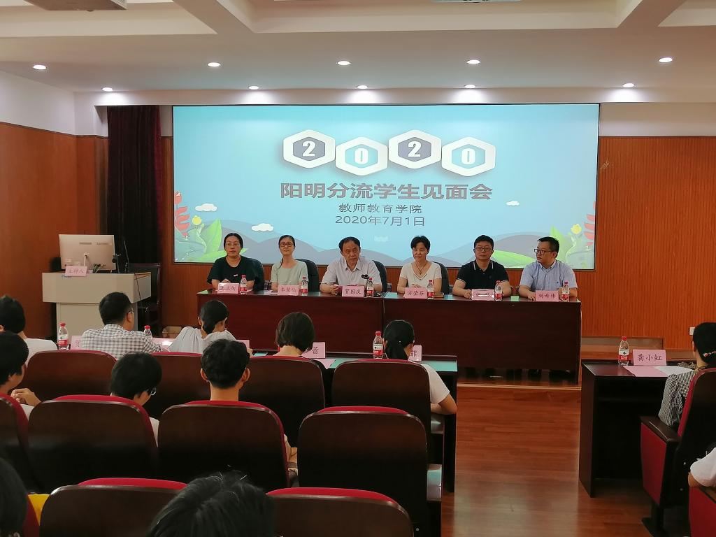 在实验楼211举行阳明学院分流新生见面会。会议由学院副书记王立衡老师主持,院长贺国庆、党委书记方莹芬、副院长李慧仙、副院长张林、副院长刘希伟,应用心理学系主任焦岚、党政办主任张爱娟,学院相关办公室负责老师、学工办全体成员及37名2019级应用心理学专业学生参加见面会。