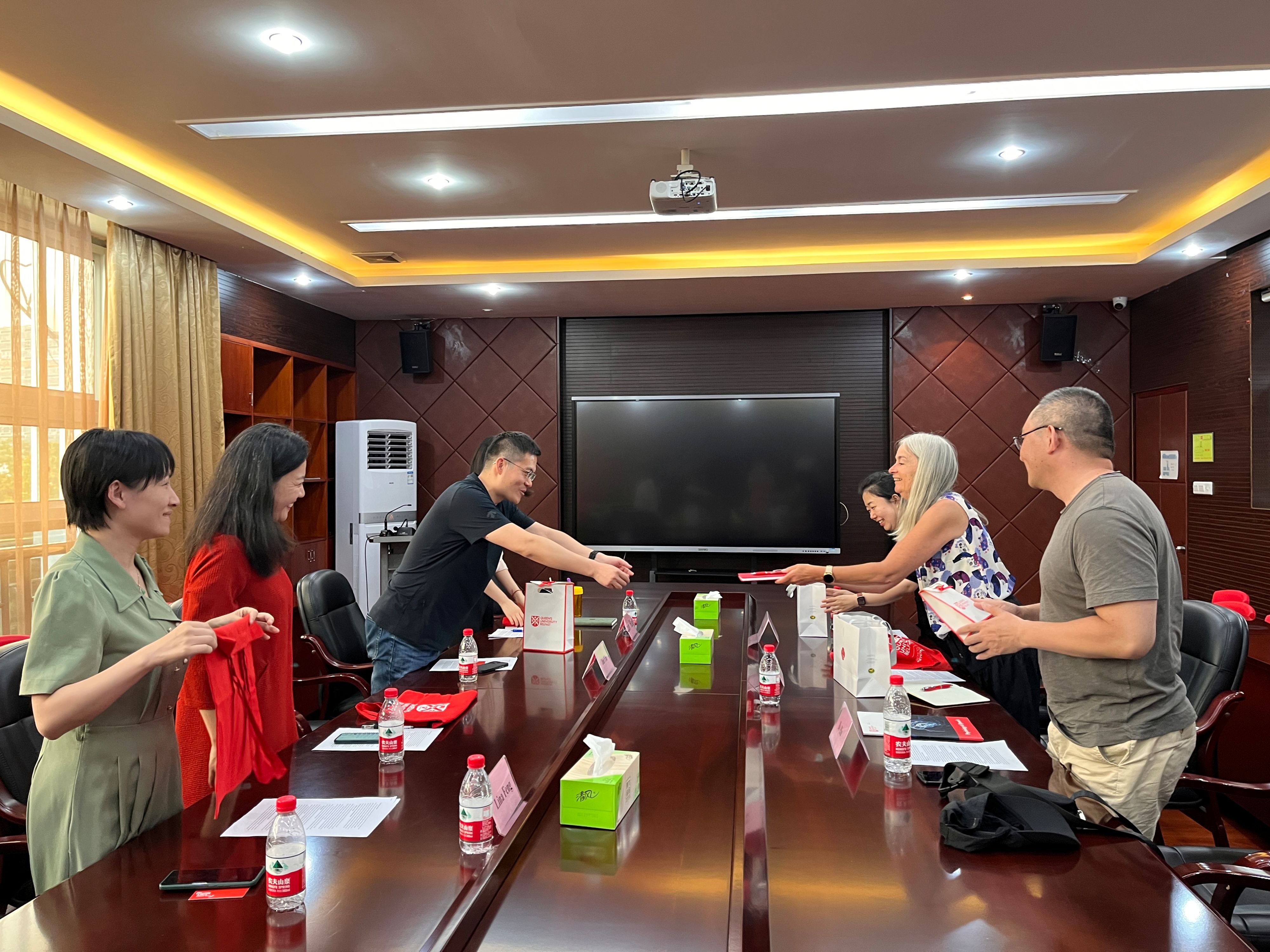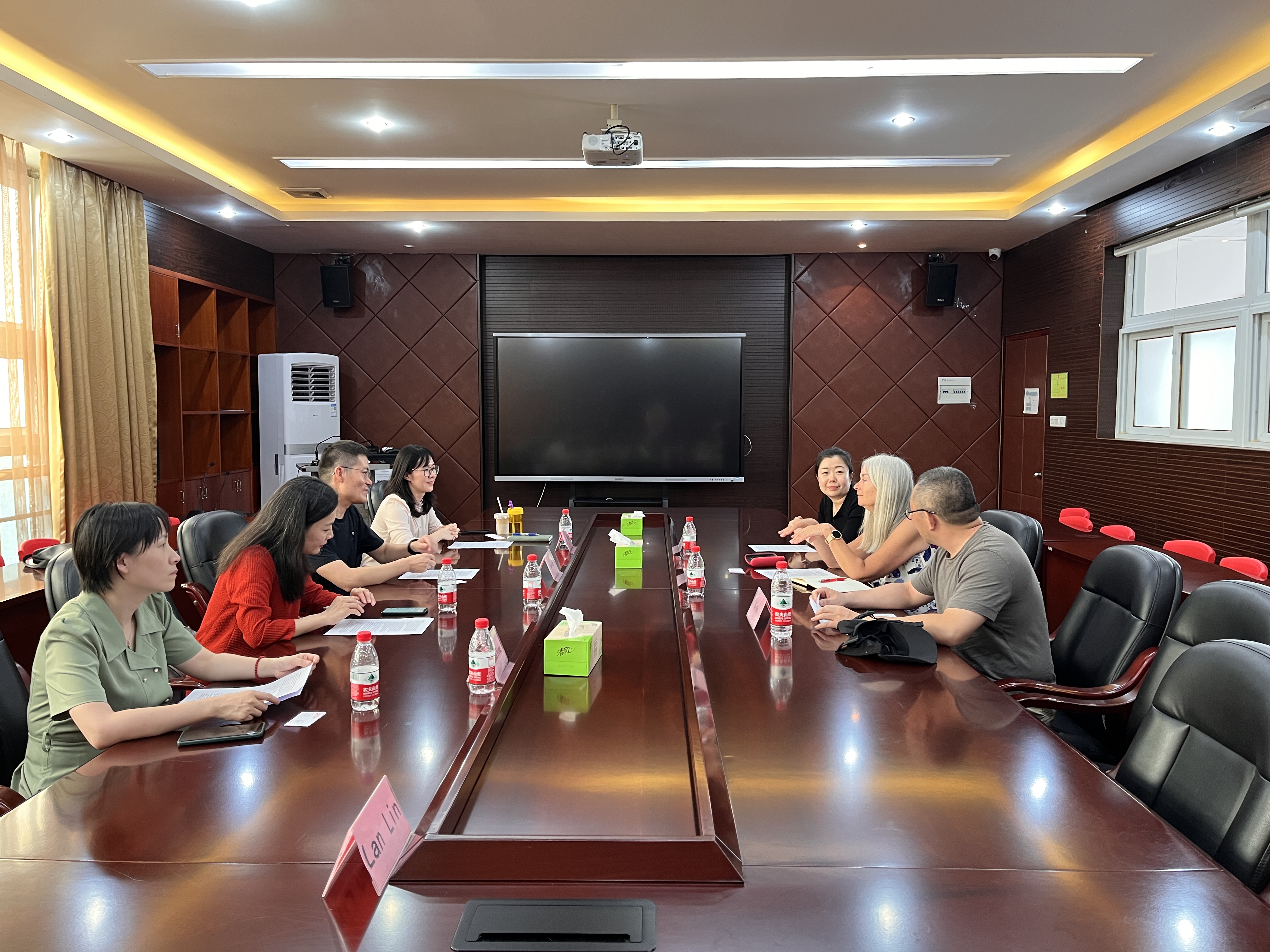 进行了访问,并与心理系教师胡博,学前教育系教师冯丽娜、郝俊、林兰进行了深入交流。针对学术研究领域的合作,双方介绍了各自擅长的研究领域以及院系的研究方向,并就儿童发展领域的数字认知以及学习进行了探讨,同时提出今后可通过线上工作坊的方式加强双方的学术合作。最后,双方还探索了国际授课的合作模式,认为可利用当前的线上平台,共同开发国际课程(COIL)。交流结束后,双方互赠了礼物,并表达了加强进一步交流的意愿。