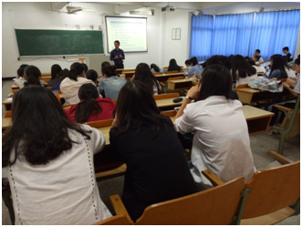 英语教育系主题为"让孩子幸福地学习英语"的讲座在实验楼213顺利举行。本次讲座由江北区外国语艺术学校林战峰校长主讲,英语教育14、15、16级的同学们参加了本次活动。
