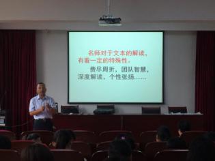 讲座中,黄校长首先提出“现阶段师范专业学生文本细读功夫不足,这是教学的一大缺失,”并举例进行论证分析;接着指出,“因不会解读文本,觉得没什么可教”是现阶段大多同学普遍存在的问题;最后针对以上问题分析了文本解读的重要性。