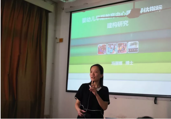 冯博士围绕她对婴幼儿早期教育中心质量评估指标建构的研究和在座教师进行了分享与交流。她首先介绍了国际婴幼儿早期教育发展的现状,强调0-3岁早期教育的重要性;其次介绍了她构建评估指标的研究过程,并详细阐述了德菲法和模糊德菲法两种研究方法的实践运用过程;最后向大家展示了台湾地区高质量的早期教育中心。