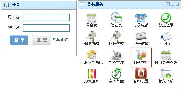 方式一:通过学校信息门户:登录门户,选择科研管理系统