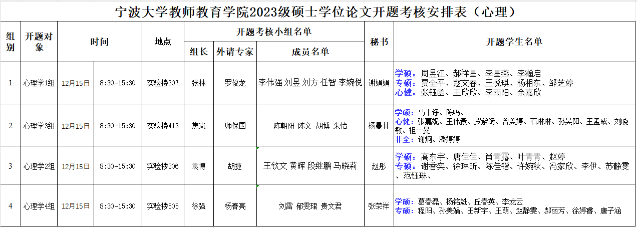 成年人电影 2023级硕士学位论文开题考核安排表(心理)