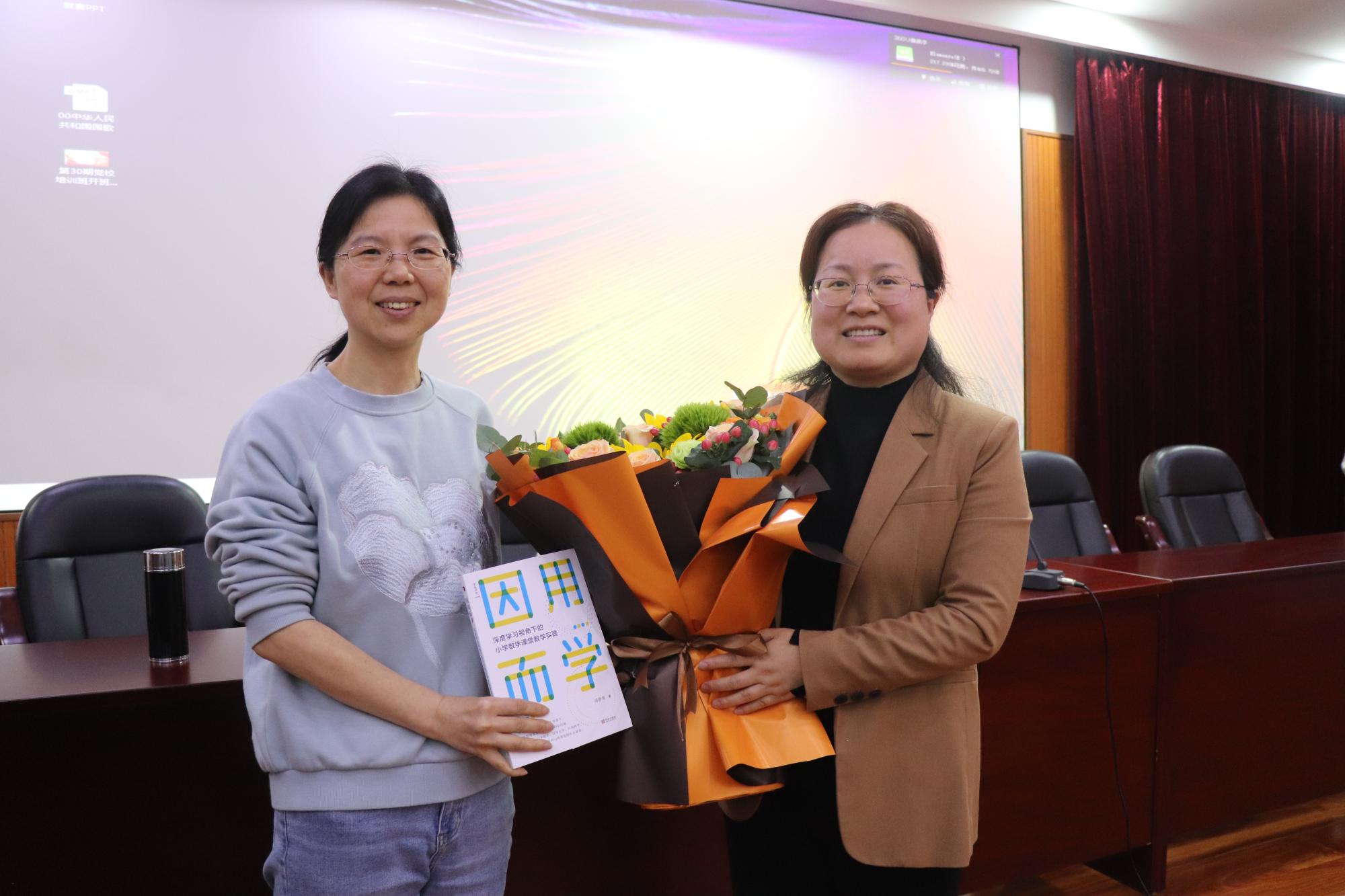 本次活动的主讲人是来自宁波市海曙中心小学的校长,周静珠老师。周老师从提出背景、思想内涵、实践指导建议这三个大方面多维度解析“因用而学”的思想。在介绍“因学而用”思想提出的背景时,周老师犀利的指出准新教师在教学中容易出现的学用断层、形实分离等问题,提醒了同学们在教学过程中促进知识深度理解和落实核心素养的必要性。在介绍其思想内涵时,周老师紧紧抓住了“用”和“学”两者之间的关系,对其内涵进行剖析,并点明了为用而学、在用中学、学而用之的思想结构,让同学对“因用而学”的概念有了较为深刻的理解。最后,周老师在其“因用而学”思想的基础上,给予了我们一些宝贵的指导建议,指导我们如何在单元整体教学、课时视角、以问题为导向、以项目驱动中渗透“因用而学”的教学思想,为同学们之后的教学设计提供了指引。