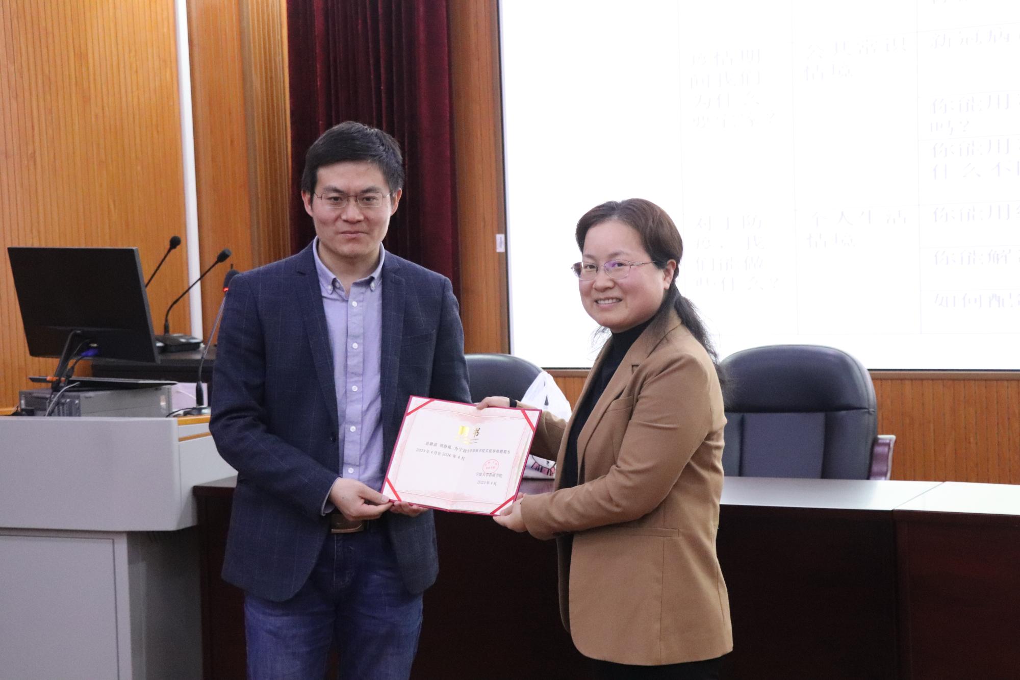 春雨书院指导老师的聘请证书,并对在场的同学给予了极高的评价以及期待“希望同学们以后成为热爱职业、喜欢孩子、勤于思考、勇于实践的教师。”同学们将周老师的寄语融汇于心,对自己提出了新要求、新目标。在活动的最后,同学们用掌声再次感谢周静珠老师的分享和指导,此次活动在同学们热烈的掌声中圆满结束。