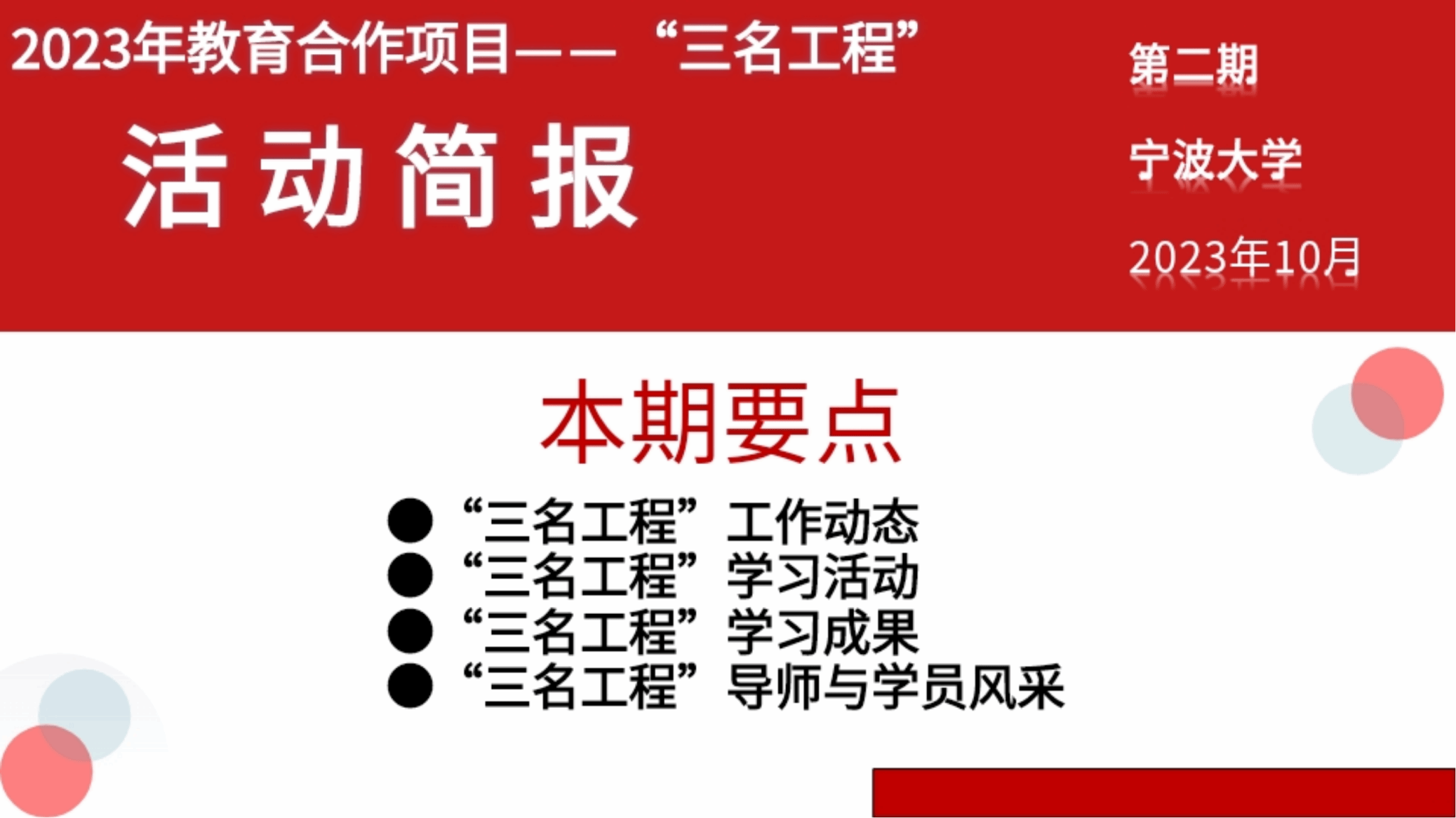 “三名工程”启动以来,开展了“主题式”学习活动以保证“三名工程”的发展。涉及教育 学、心理学、教育政策法规等方面的知识传授,由导师进行专题讲座。同时,组织学员进行课堂观摩、教学研讨,以及班主任和班级 管理实践,并且通过分析成功的教育案例,培养学员的问题解决能力和创新思维。还鼓励学员分享自己的教育经验和心得,促进相 互学习与成长。利用网络平台进行远程学习,提供丰富的在线课程和资源。