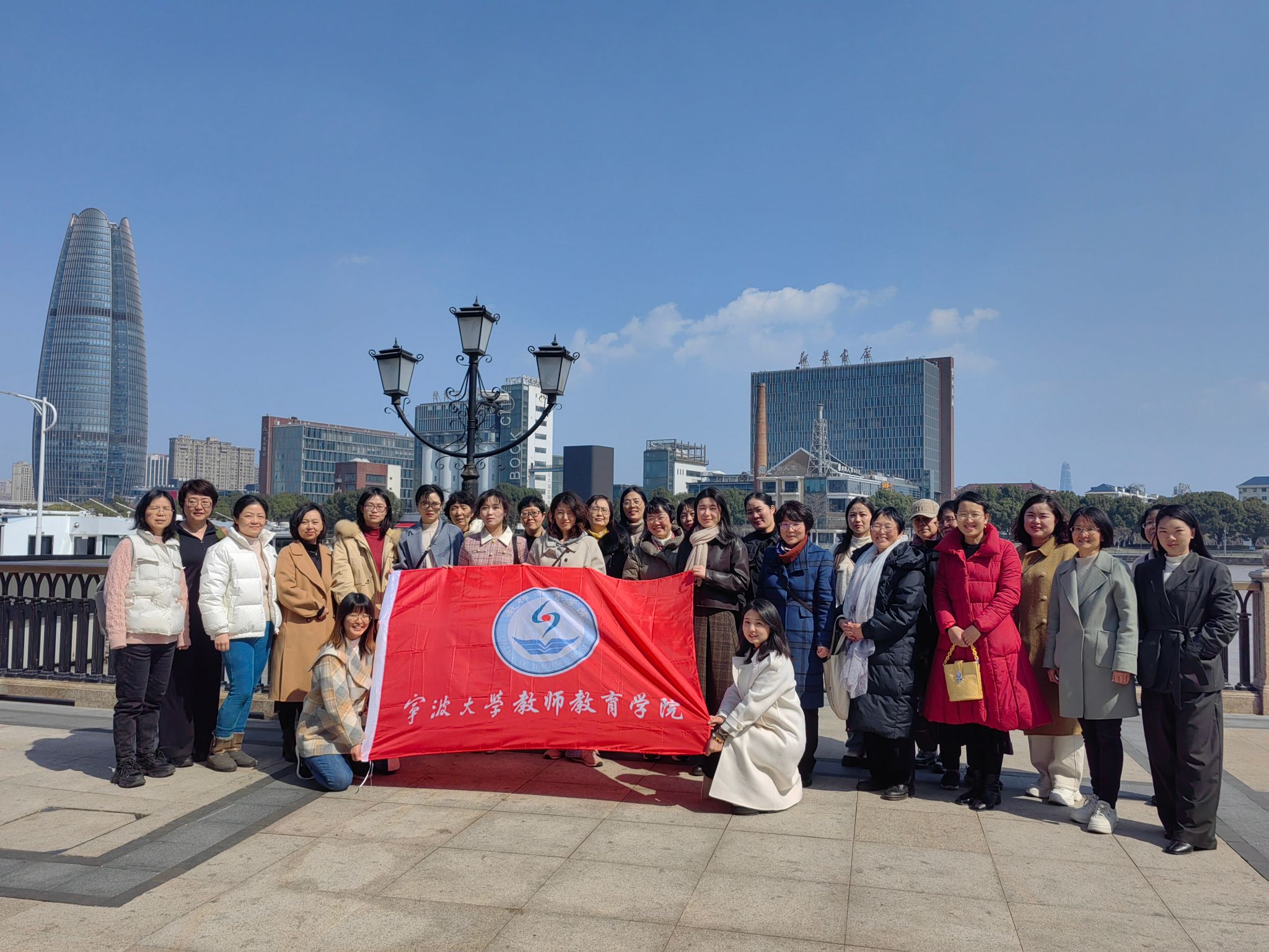 在春日暖阳的陪伴下,老师们乘着大巴抵达宁波老外滩,在外滩步行街游览。老外滩位于三江口——宁波的市中心,比上海外滩的历史早20年。如今,老外滩仍保存着许多漂亮的老建筑,它们大多改建为小资的餐厅,形成一片颇有情调的文旅休闲区域。走在步行街上,脚下踩着的青石板路在静谧的阳光下诉说着这里的百年历史。